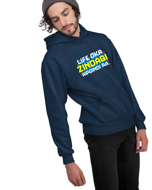 Life Oka Zindagi Aypoindi Ra Unisex Hoodie Navy Blue