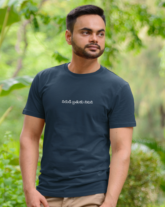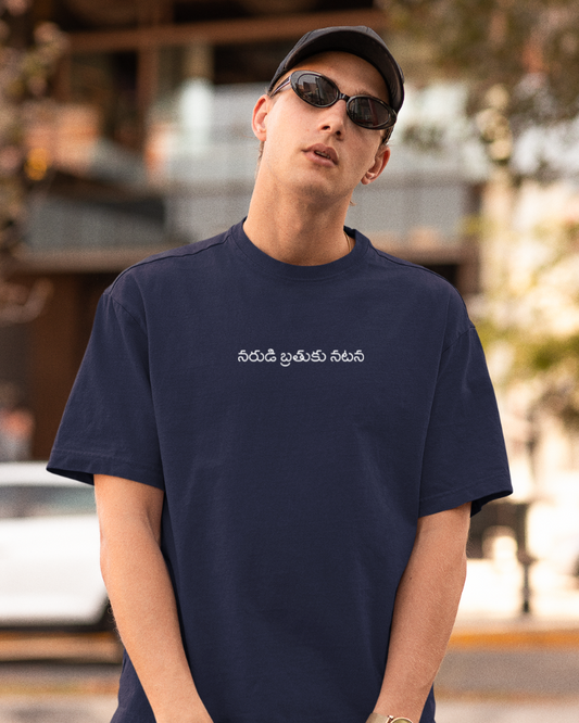 Oversized Telugu Minimals : Narudi Bratuku Natana Navy Blue Unisex T-shirt