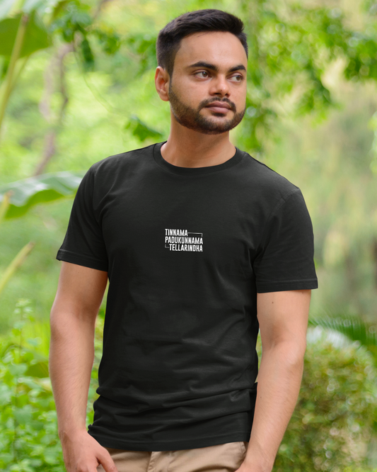 Oversized Telugu Minimals : Tinnama Padukunnama Tellarindha Black Unisex T-shirt